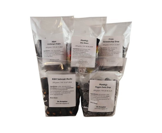 In deze box vind je harde en zachte drop, maar ook zoete en zoute drop.