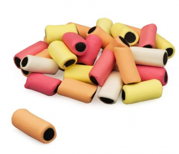 suiker, gemodificeerd aardappelzetmeel, glucosestroop, rietsuikermelasse, zoethoutwortelextract, water, salmiakzout, kokosolie, glansmiddel (E901). Allergenenlijst