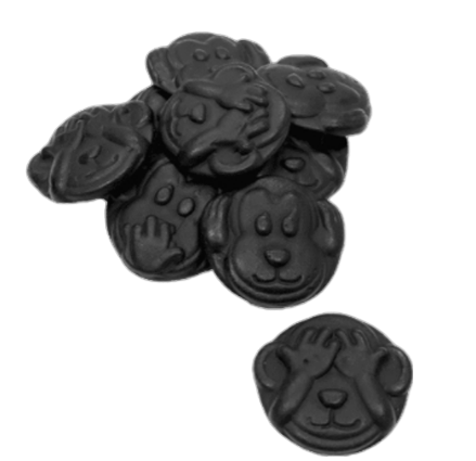 suiker, glucosestroop, gemodificeerd zetmeel (aardappel), melasse, zoethoutwortelextract, salmiakzout, kleurstof (E153), natuurlijk aroma, glansmiddel (carnaubawas).Allergenenlijst :