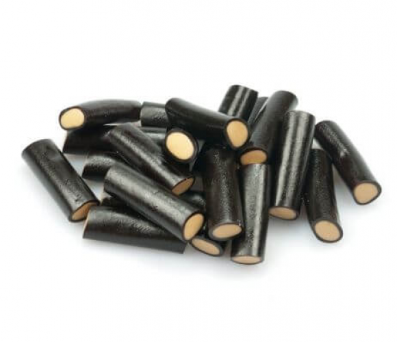suiker, rietsuikersiroop, glucose-fructosestroop, tarwemeel (gluten), gemodificeerd mais- en aardappelzetmeel, geheel gehard plantaardig vet (palmpit, kokos), vochtvasthouder (glycerol), dropextract (1%), emulgator (mono- en diglyceriden van vetzuren), gelatine, zout, plantaardige olie (palm, palmpit, kokos), enrobeermiddel (carnaubawas), aroma. Allergenenlijst :